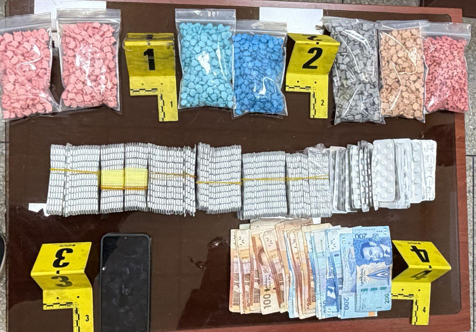 وقد جرى توقيف المشتبه فيه على مستوى محطة السكك الحديدية بمدينة فاس، وذلك مباشر بعد وصوله على متن قطار قادم من إحدى مدن شمال المملكة، حيث أسفرت عملية الضبط والتفتيش عن العثور بحوزته على 7198 قرصا مخدرا، من بينها 4200 قرصا طبيا من نوع “ريفوتريل” و2998 قرصا مهلوسا من نوع “إكستازي”، علاوة على مبلغ مالي يشتبه في كونه من متحصلات ترويج المخدرات.