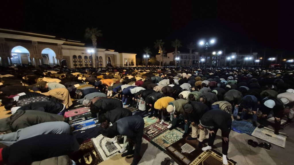 بدأت ملامح هذه الليلة الاستثنائية تظهر منذ الساعات الأولى التي سبقت أذان العشاء، حيث امتلأت جنبات المسجد وساحاته الخارجية المحيطة بآلاف المصلين من مختلف الأعمار، شباباً وشيوخاً وأطفالاً، في مشهد ينم عن روحانية عالية وتنظيم محكم. وما زاد من رمزية هذه الأمسية هو الحضور الرسمي الرفيع المستوى، يتقدمه والي جهة الشرق وعامل عمالة وجدة أنجاد، إلى جانب ثلة من أعيان المدينة والمسؤولين المحليين والشخصيات البارزة، الذين شاركوا الساكنة هذه اللحظات الربانية، مؤكدين على تلاحم كافة مكونات المجتمع الوجدي في مثل هذه المناسبات العظيمة.