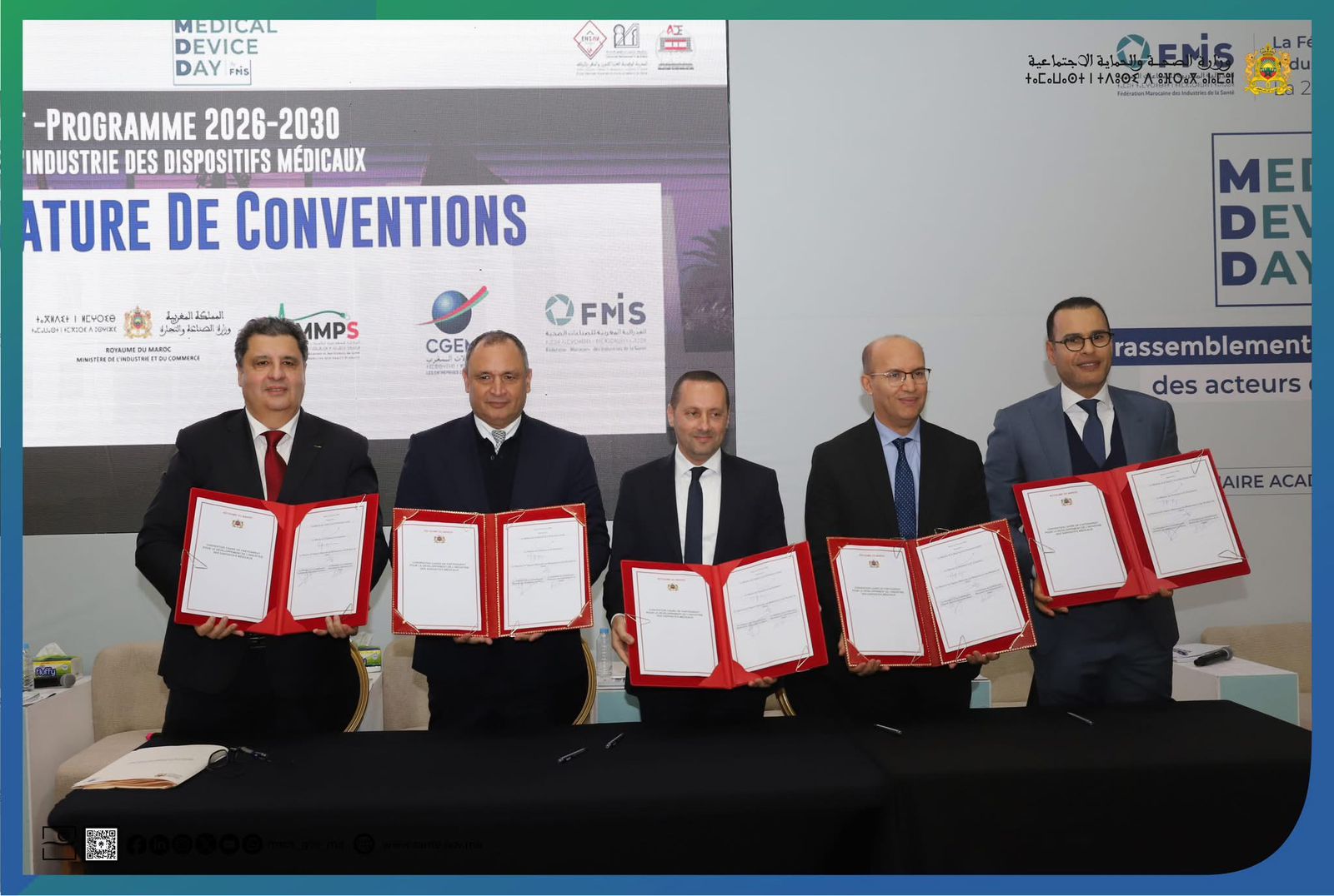 وقع وزير الصحة والحماية الاجتماعية، ووزير الصناعة والتجارة، والمدير العام للوكالة المغربية للأدوية والمنتجات الطبية، ورئيس الاتحاد العام لمقاولات المغرب، ورئيس الفيدرالية المغربية للصناعات الصحية، اليوم الأربعاء، على اتفاقية إطار للفترة 2026-2030 تهدف إلى تطوير صناعة المستلزمات الطبية بالمغرب.