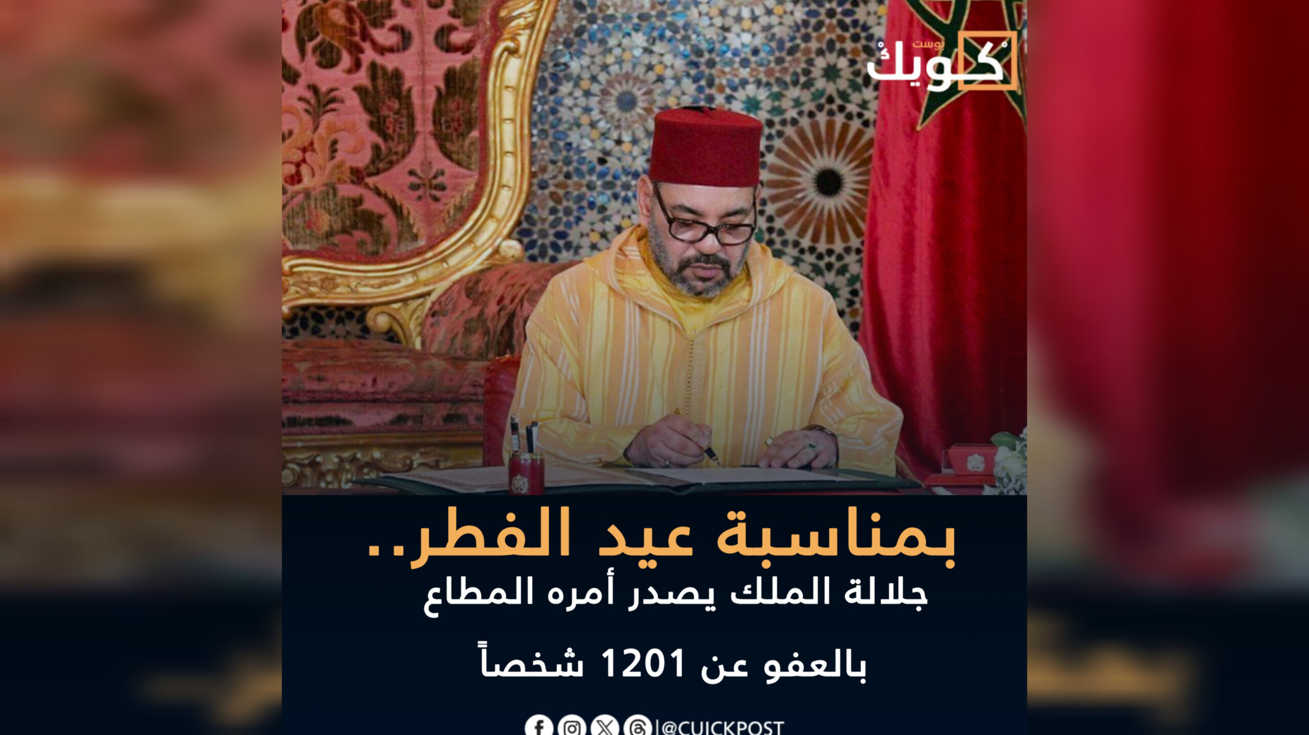 ” بمناسبة عيد الفطر السعيد لهذه السنة 1447 هجرية 2026 ميلادية، تفضل جلالة الملك أدام الله عزه ونصره، فأصدر حفظه الله أمره السامي المطاع بالعفو على مجموعة من الأشخاص منهم المعتقلين ومنهم الموجودين في حالة سراح، المحكوم عليهم من طرف مختلف محاكم المملكة الشريفة وعددهم 1182 شخصا، وهم كالآتي: