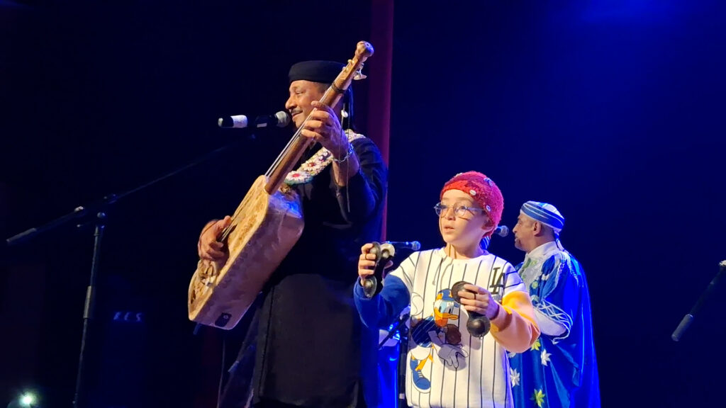 لكن بعيداً عن الموسيقى والمسرح، كانت اللحظة الأكثر عمقاً بالنسبة للقصري هي رؤيته لجيل جديد يتشبع بهذا الفن. فعندما صعد طفل صغير إلى الخشبة، رأى فيه المعلم امتداداً لإرثه و لطفولته، حيث قال بتأثر: “هذاك ولدي… فكرني في الطفولة ديالي، حتى أنا كبرت في وسط كناوة. عندما أرى الشباب والأطفال يتعلمون، كنقول الحمد لله، واخا إلا مشيت أنا راه غادي يبقى الخلف، وهذه هي الربح الحقيقي”.