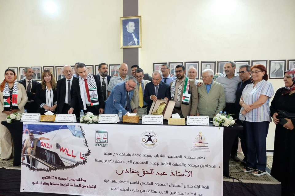 وجدة – شهد نادي المحامين بمدينة وجدة، مساء الجمعة، حفلاً تكريمياً مميزاً نظم على شرف الأستاذ عبد الحق بنقادي، المحامي بهيئة وجدة، وذلك تقديراً لمشاركته الشجاعة ضمن “أسطول الصمود العالمي” الذي هدف إلى كسر الحصار المفروض على قطاع غزة.
