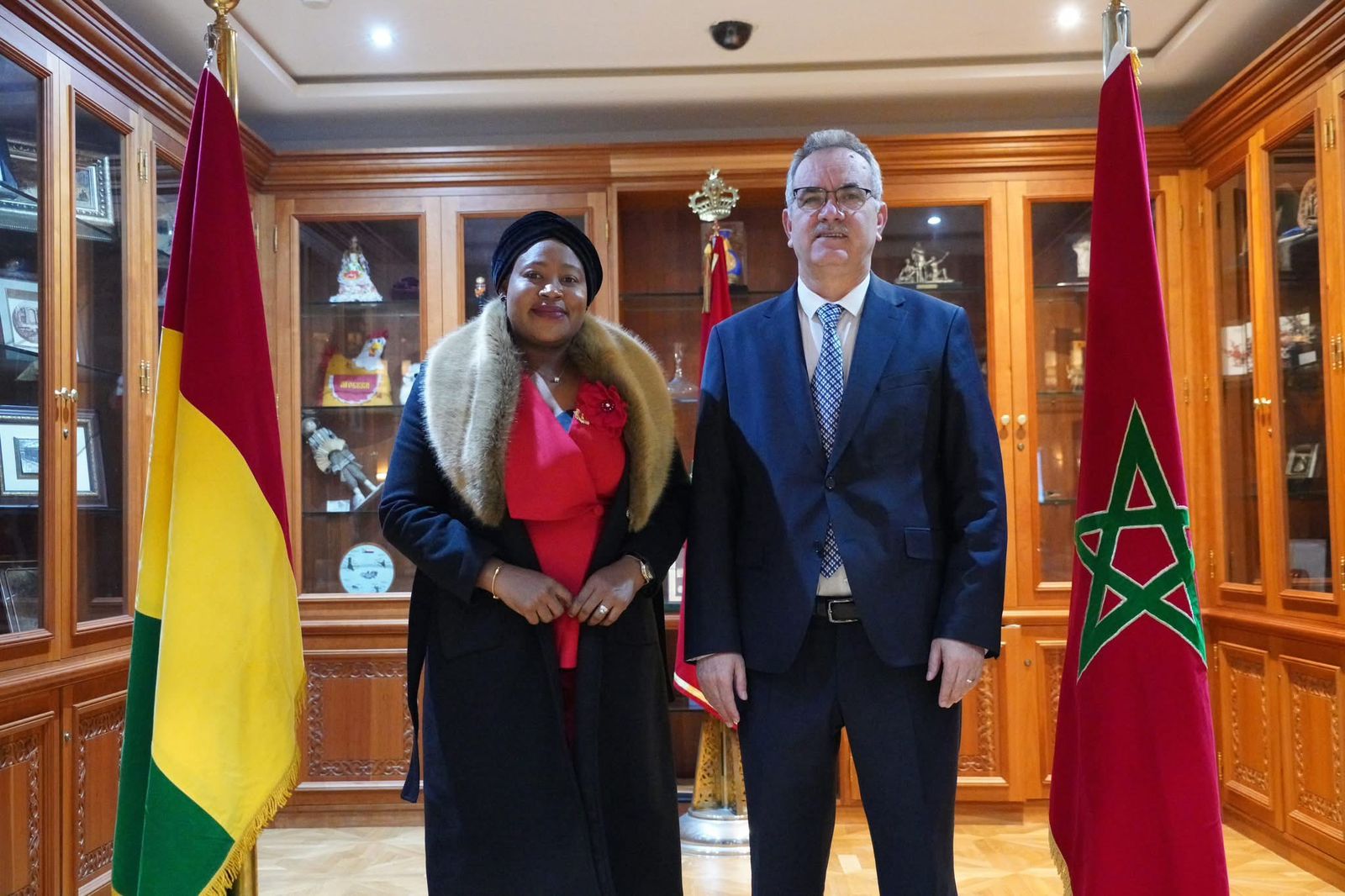 خلال هذا اللقاء، استعرض السيد محمد الحجيرة مسار العلاقات التاريخية المتميزة بين المملكة المغربية وجمهورية غينيا، مسلطاً الضوء على الدينامية المتنامية التي تشهدها هذه العلاقات في مختلف المجالات. كما نوه، في هذا الصدد، بالموقف الثابت والراسخ لجمهورية غينيا الداعم للوحدة الترابية للمملكة، والذي تجسد بشكل ملموس في افتتاح قنصلية عامة لها بمدينة الداخلة، في خطوة سيادية تعكس متانة الروابط الثنائية.